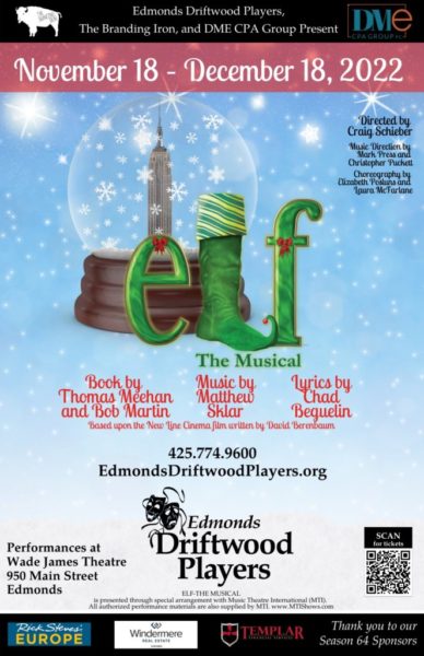 The Driftwood Players are bringing to life a title known the world over. Elf: The Musical is a must-see holiday tradition, based on the cherished 2003 New Line Cinema hit, Elf. The book is by Thomas Meehan and Bob Martin, music by Matthew Sklar and lyrics by Chad Beguelin. Buddy, a young orphan, mistakenly crawls into Santa’s bag of gifts and is transported to the North Pole. The would-be elf is raised by the elves and unaware that he is actually a human until his enormous size and poor toy-making abilities cause him to face the truth. With Santa’s permission, Buddy embarks on a journey to New York City to find his birth father and discover his true identity. Faced with the harsh realities that his father is on the naughty list and his half-brother doesn’t even believe in Santa, Buddy is determined to win over his new family and help New York remember the true meaning of Christmas. This modern-day holiday classic is sure to make everyone embrace their inner elf. After all, the best way to spread Christmas Cheer is singing loud for all to hear.