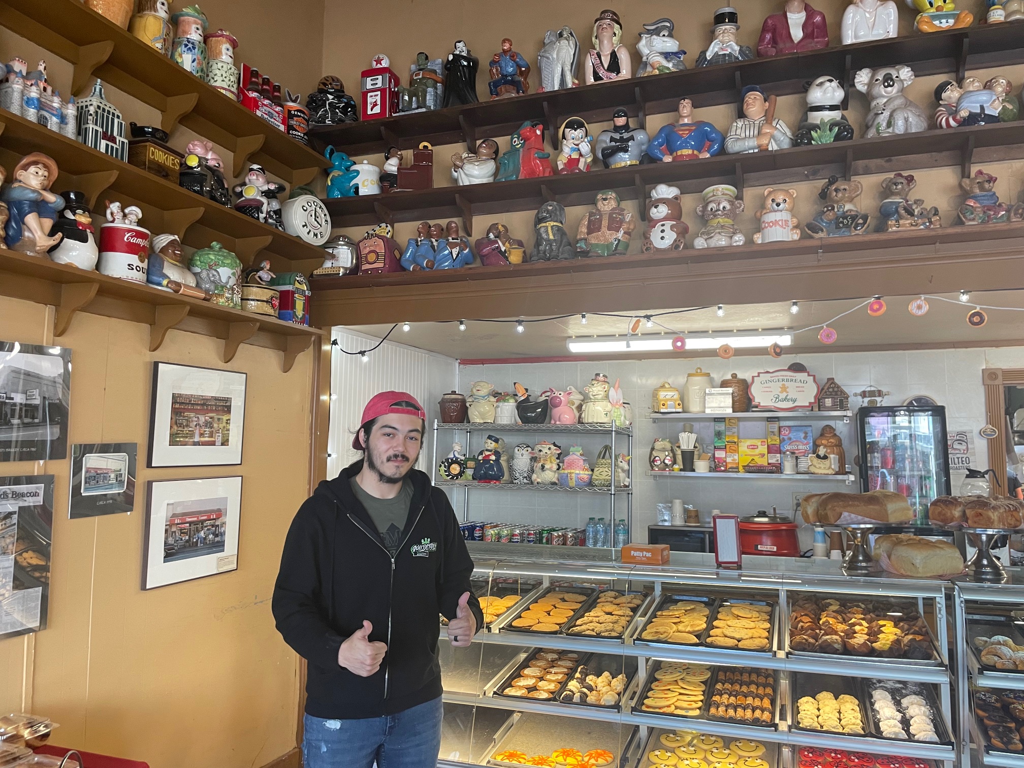 There will be old photos in the documentary, and if you look up the Edmonds Bakery history online, you’ll find photos from back in the day. One of them even shows Ken [Bellingham, owner of Edmonds Bakery], who’s featured in the documentary, putting up the cookie jars. You can spot the old red bakery sign that used to hang outside too.