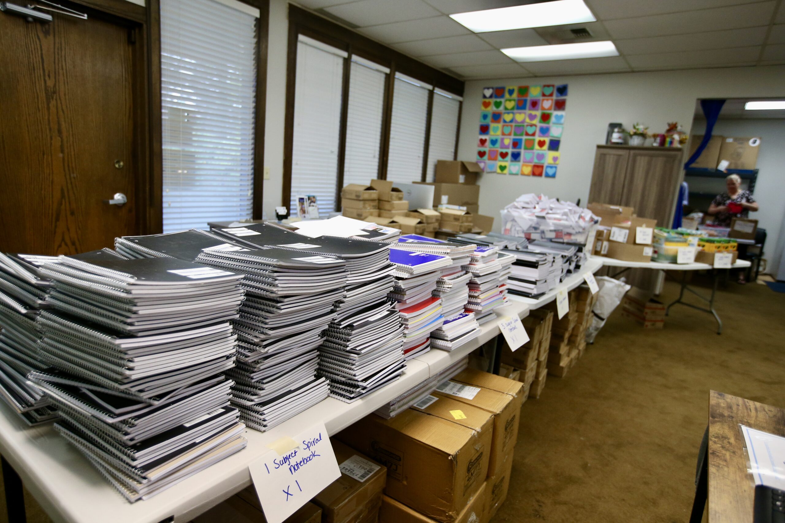 Piles of notebooks, index cards and colored pencils greeted anyone who entered the Washington Kids distribution center Wednesday morning.