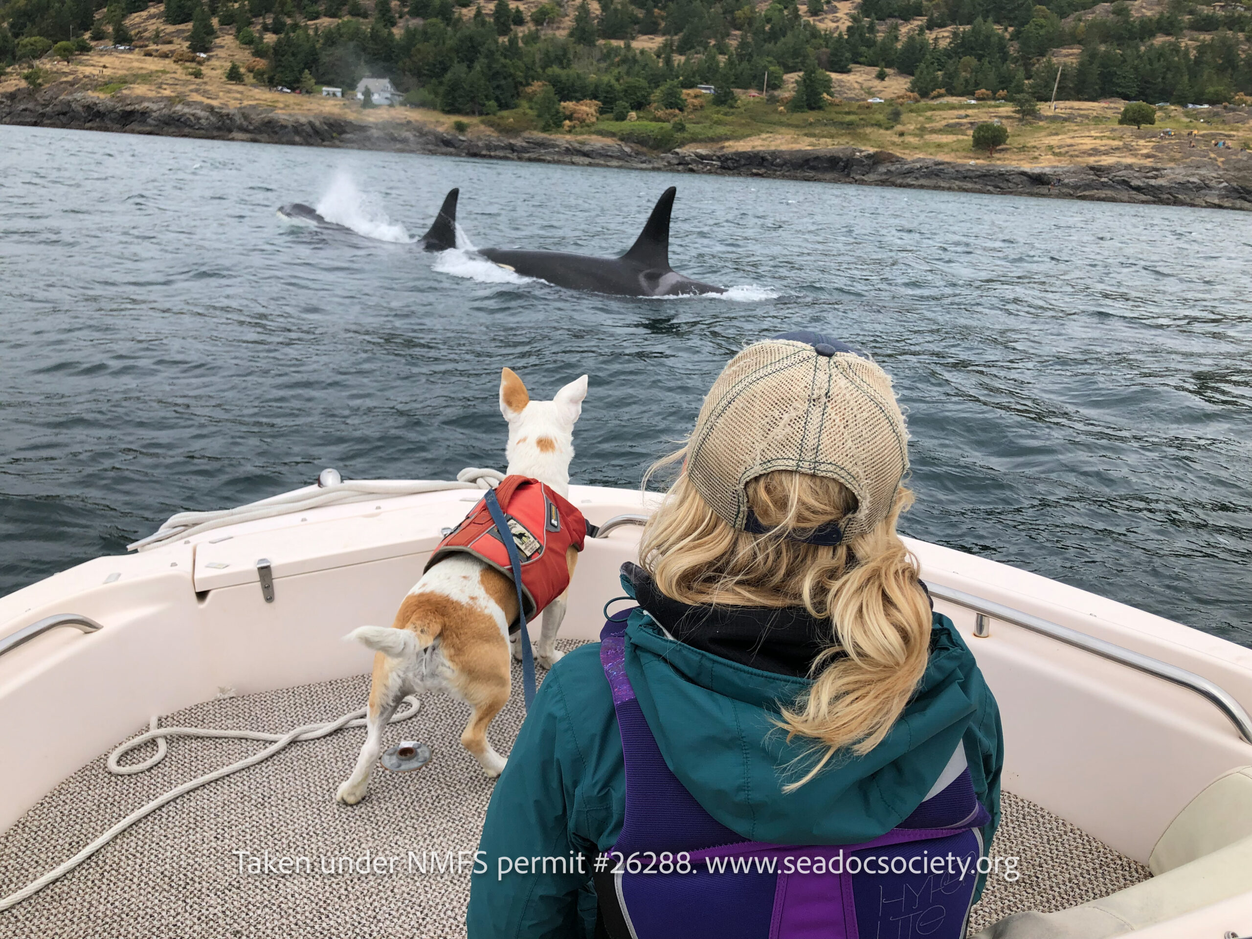 Eba, who was rescued by Giles from the streets of Sacramento, travels with Giles and her colleagues on board a research vessel throughout the Salish Sea. When she detects the odor of floating killer whale scat, her body stiffens and her nose points downward in the direction of the feces. With an acute focus on Eba’s body language, Giles communicates with the vessel’s captain to turn around to locate and scoop up the sample, which is sent to a lab on San Juan Island for analysis.