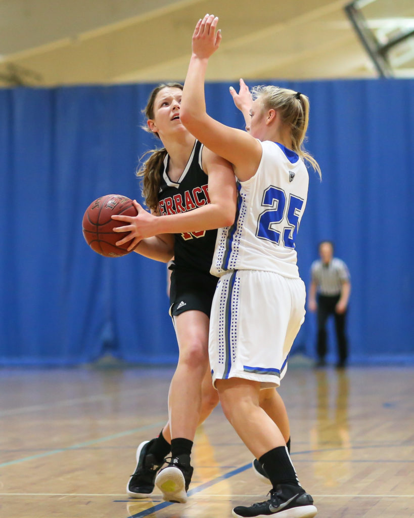 Cameron Dunn being fouled by Sedro Woolley’s Makenna Peterson on her way to shoot a layup