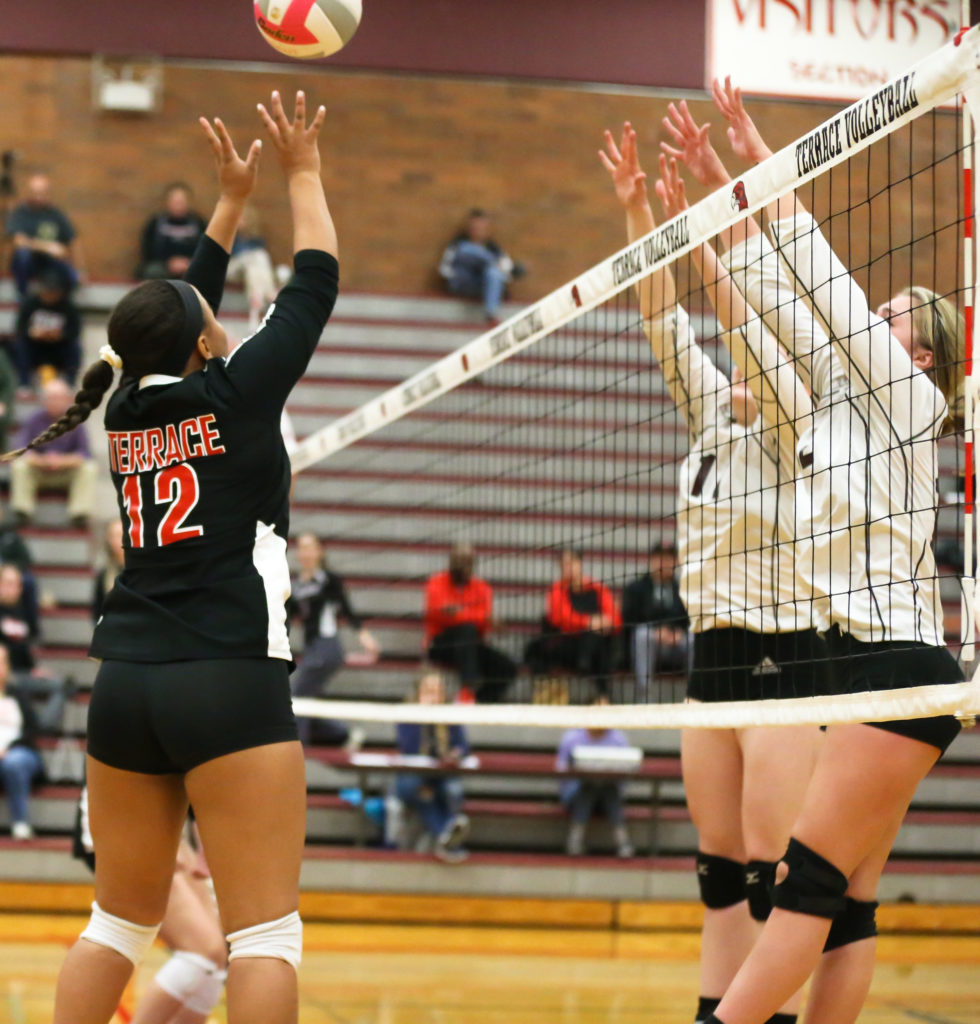 Kierra Scott floating the ball over Cedarcrest’s defenders to tie the 3rd game up 27-27