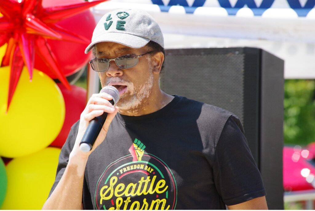 Mountlake Terrace City Councilmember, William L. Paige, Jr. reads the City’s proclamation to celebrate Juneteenth.Keynote speaker and Mountlake Terrace City Councilmember Steve Woodard recounted the origins and trials of Juneteenth and the positives of being a father.Sno-Isle Libraries Executive Director Eric Howard welcomes attendees to the event.Jane patiently gets her face painted by Rashmi Gupta.Imani Jackson and Vi Jackson provide information about the Snohomish County Black Heritage Committee.L-R: Mountlake Terrace Deputy City Manager Carolyn Hope, Councilmember Erin Murray, Sno-Isle Libraries Executive Director Eric Howard, Councilmember William L. Paige, Jr. and Councilmember Steve Woodard.Liam and Jerrocho enjoy creating art.Free food was served by The Dancing Kitchen. L-R: Shanti C., owner Aloria Ashley and Caleb W. The menu included jerk chicken tacos, macaroni and cheese, and rice.A Juneteenth: More Than A Day sponsor was Lynnwood-based Project Girl. Founder Olympia Edwards is in the center.DJ Uncle Lue provided lively music for the entire event.Etmond Carranza was on hand to share information about 2-1-1, which is a one-stop connection to local services — including utility assistance, food, housing, health, child care, after-school programs, elder care and crisis intervention.Northwest Civic Circle’s Alicia Crank facilitated a Father’s Day panel with five panelists (L-R): Shaylynn Lott, Terry Lott Jr., Terry Lott Sr., Michael Adams and Steve Woodard.