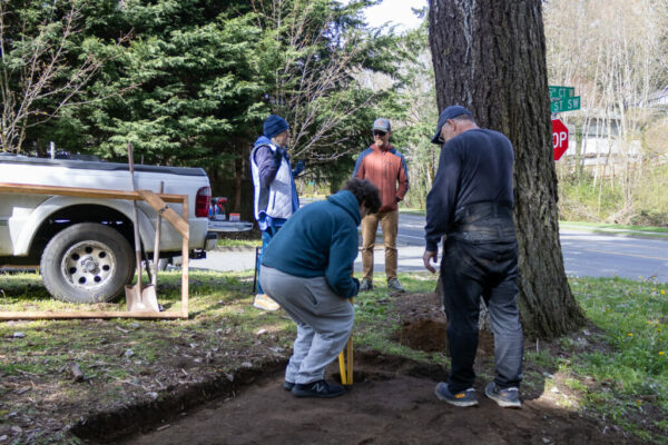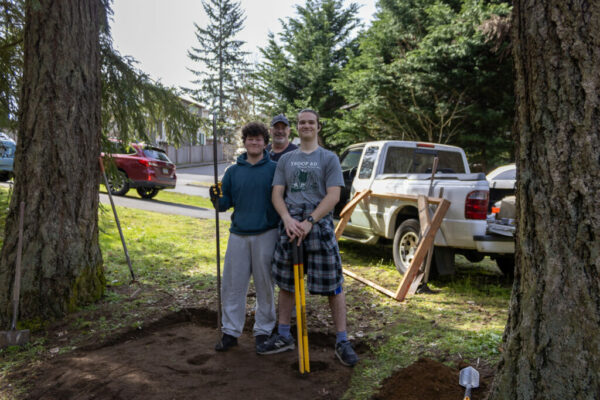 The group arrived to see Scout Theo Cooksey’s Eagle Scout project in action, where Cooksey, his father Marty Cooksey, and fellow Scout Owen Davis dug post holes for a new bench.