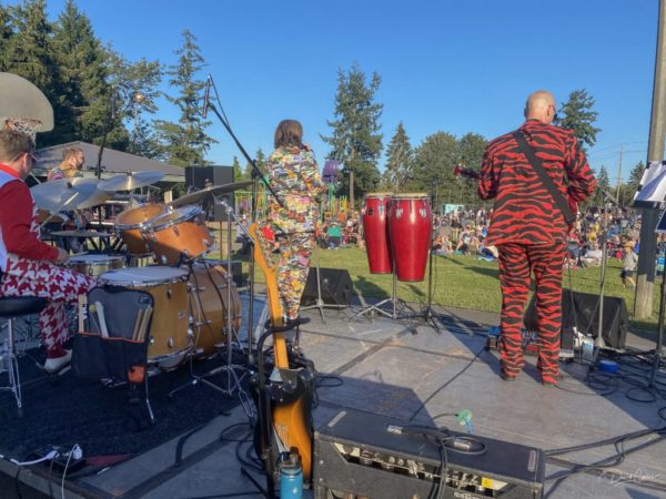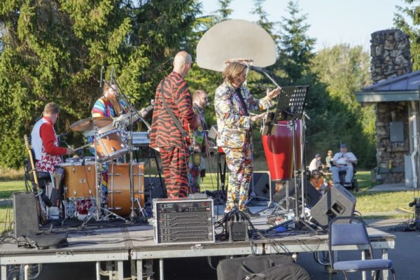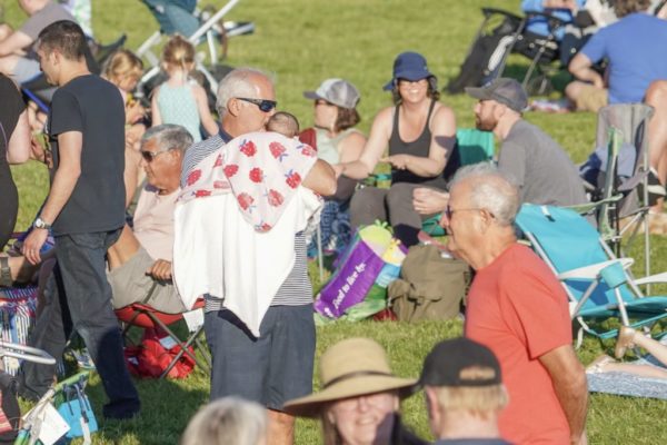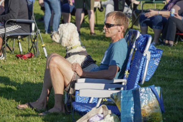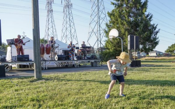 The Slacks’ setlist included songs by Hall and Oates, Lipps Inc, and Earth Wind and Fire. “Danceable, group music,” as keyboardist Dave Wiens described it. Ask what he’d like to see happen tonight, Wiens said, “I hope to see smiles on faces, maybe some kids up and around dancing, and people having a good time.”By the look of the happy audience, he got his wish.