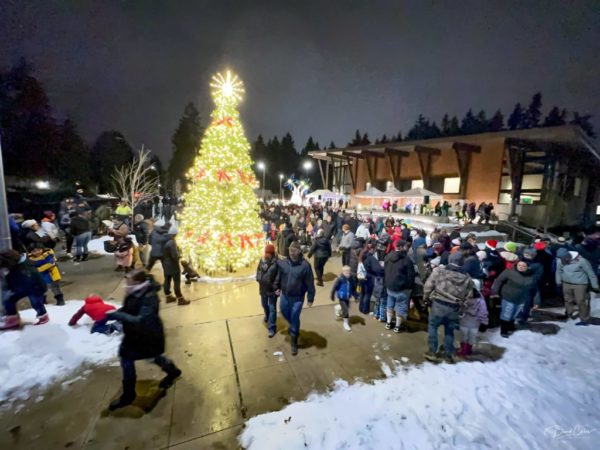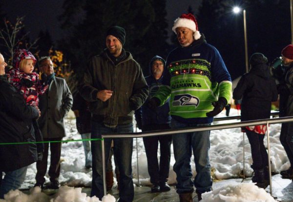 Young parents held their kids on their shoulders, older folks chatted and some enthusiastic revelers wore blinking colorful necklaces. Mountlake Terrace City Councilmember Steve Woodard even had a flickering Seahawks holiday sweater. Go Hawks!