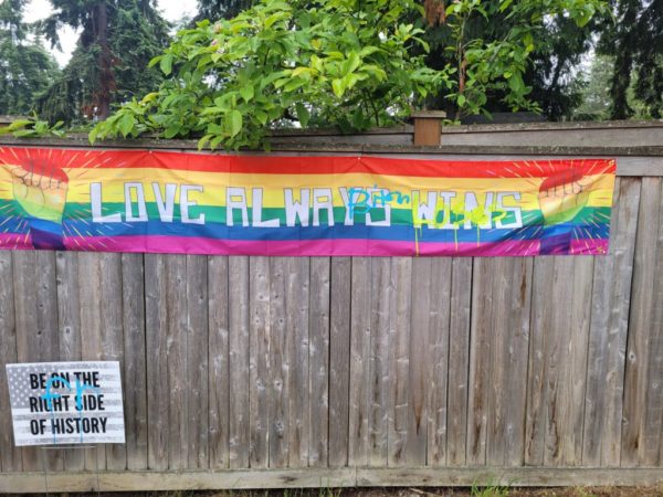 Between Sunday night and Monday evening, a Mountlake Terrace family’s fence and Pride month signs were vandalized with spray paint, resulting in a hate crime investigation by Mountlake Terrace police.