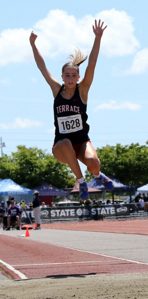 In other results from Thursday’s state track meet, Terrace’s Brynlee Dubiel won a spot in the finals of the 3A girls 100 meter hurdles to be staged on Friday. Dubiel qualified for the event finals with a third place after completion of the preliminary 3A girls 100-meter hurdles races.