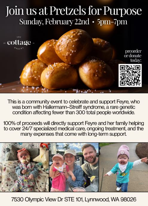 The Cottage Bakery in Perrinville officially announce the beneficiary of its very first Pretzels for Purpose: Sweet Feyre Clark