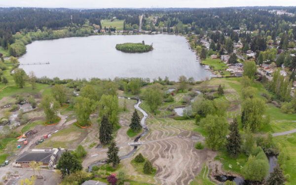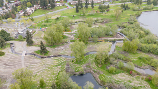 The $5.5 million project aims to transform Ballinger Park into a natural area with wetlands, riparian corridors, natural vegetation, habitat for birds, fish, turtles and amphibians — and hopefully someday to support salmon runs.