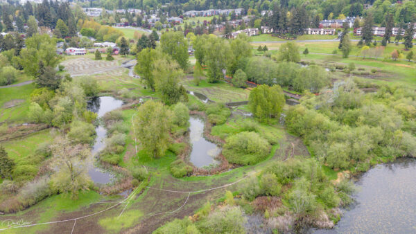 The $5.5 million project aims to transform Ballinger Park into a natural area with wetlands, riparian corridors, natural vegetation, habitat for birds, fish, turtles and amphibians — and hopefully someday to support salmon runs.