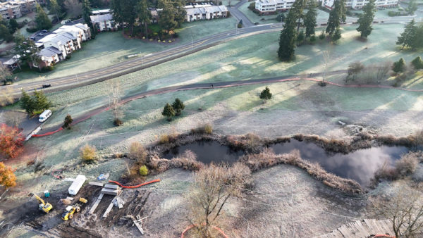 The $5.5 million project aims to transform Ballinger Park into a natural area with wetlands, riparian corridors, natural vegetation, habitat for birds, fish, turtles and amphibians — and hopefully someday to support salmon runs.