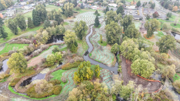 The $5.5 million project aims to transform Ballinger Park into a natural area with wetlands, riparian corridors, natural vegetation, habitat for birds, fish, turtles and amphibians — and hopefully someday to support salmon runs.