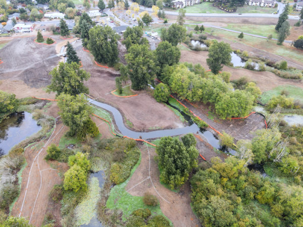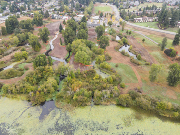 The $5.5 million project aims to transform Ballinger Park into a natural area with wetlands, riparian corridors, natural vegetation, habitat for birds, fish, turtles and amphibians — and hopefully someday to support salmon runs.