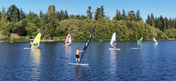 Windsurfing on Lake Balllinger Thursday. (Photo by David Carlos)
