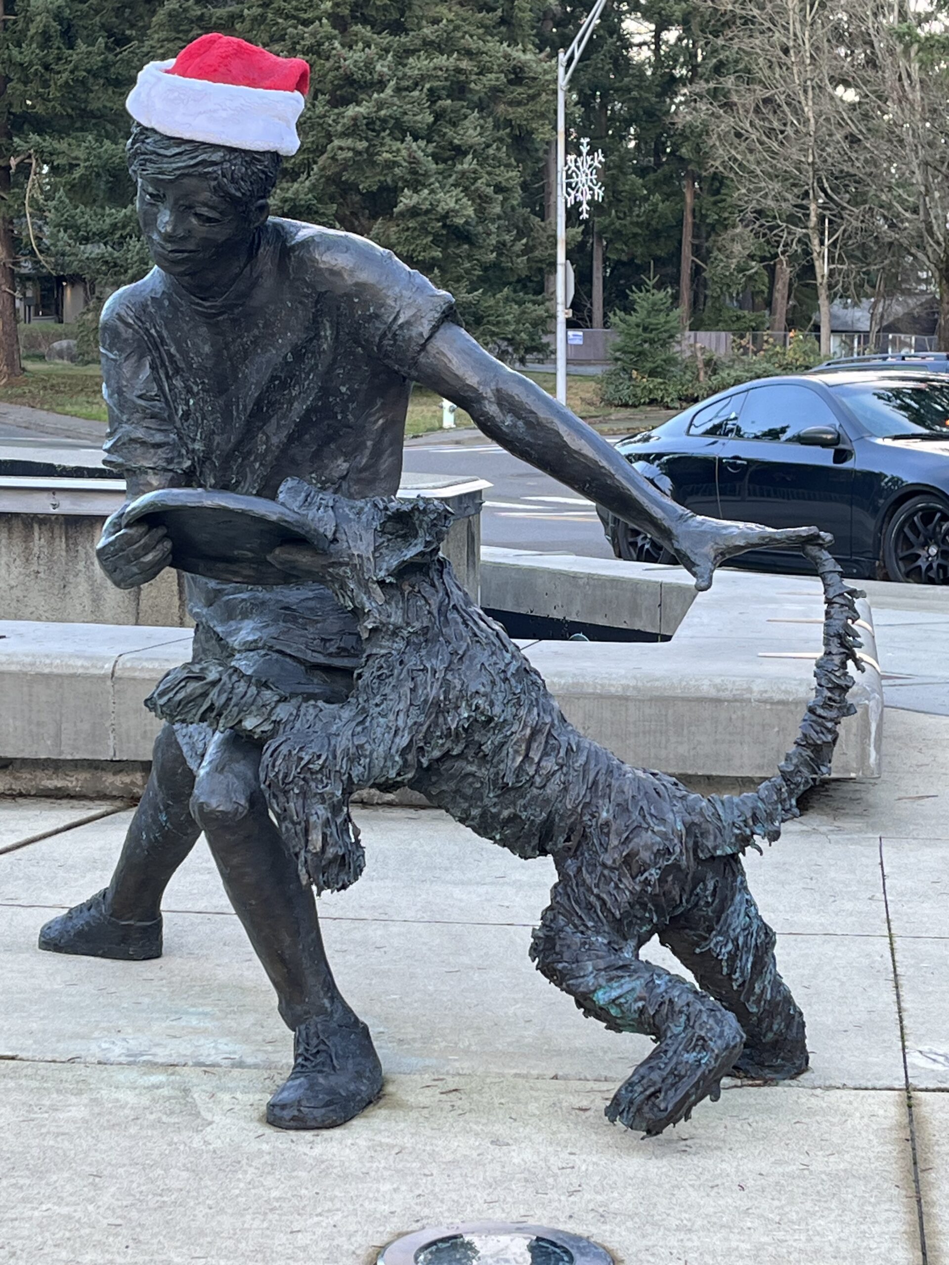 A festive addition to the sculpture in Jerry Smith Town Center Plaza. (Photo by Victor Eskenazi)