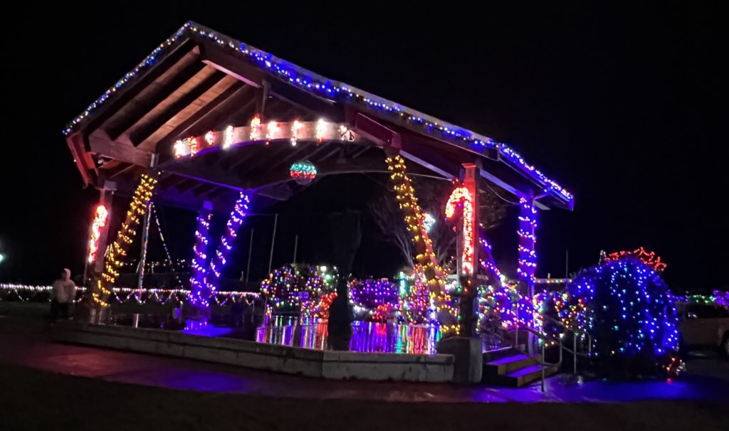 Yes, I want to support My MLTnews!Photographer Julia Wiese and a group of friends walked on to the Edmonds-Kingston ferry Saturday night to have dinner in Kingston, and were greeted by “an amazing display” of holiday lights in the park next to the Kingston ferry terminal, along with decorated sailboats in the harbor. “It would be a nice outing for locals and visitors who want something to do,” she said. “Even on a rainy night it was beautiful and the lights reflecting on the puddles added to the color. “