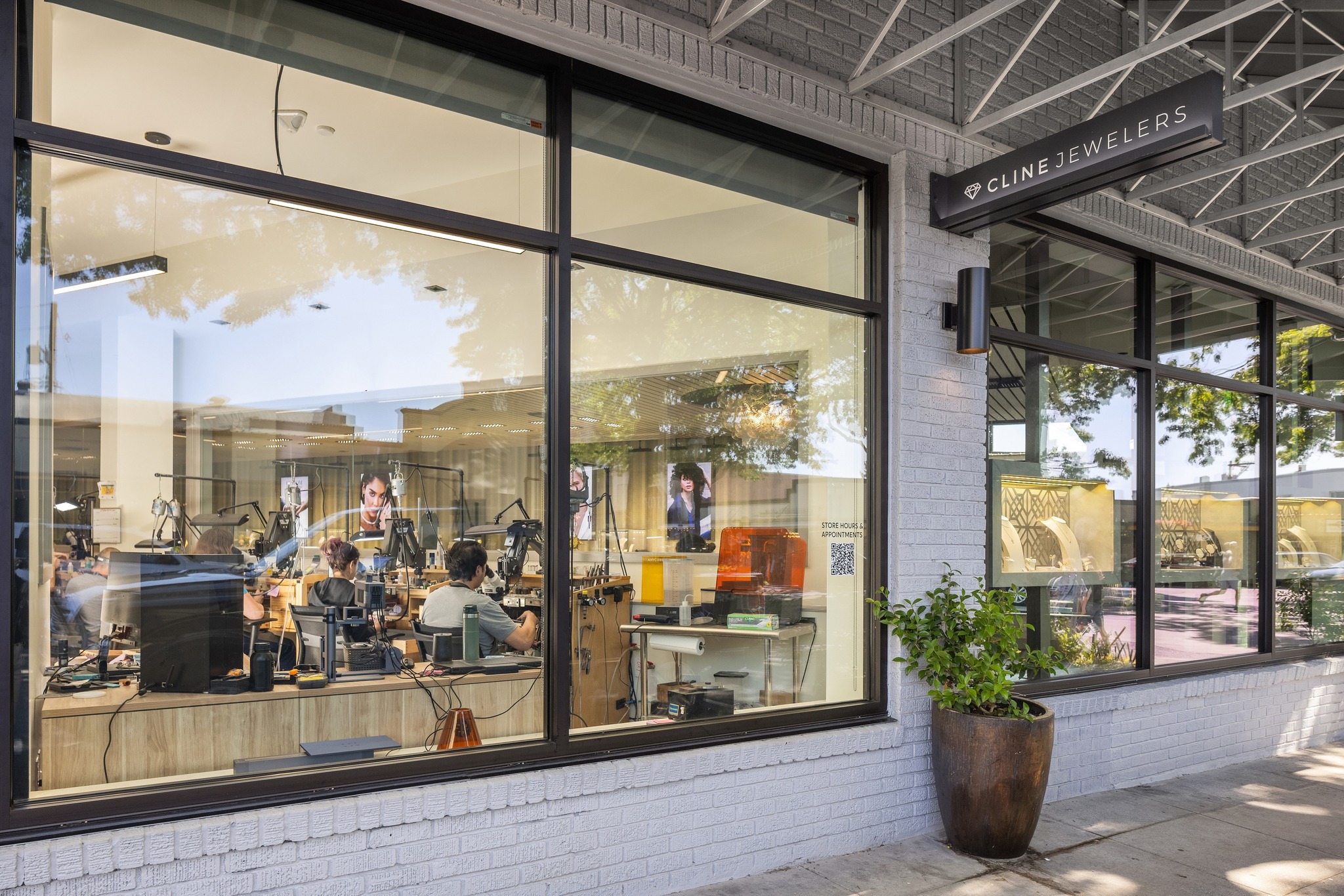 “Over the next decade, the business really expanded, and that first location got to be too cramped,” says Cline. “The current location lets us provide a lot more for our clients in terms of both services and the size of our jewelry collection, and it’s been great.” Plus, Cline adds, it’s pretty cool for passers-by to be able to peer through the store’s windows and see the jewelers at work from the sidewalk.