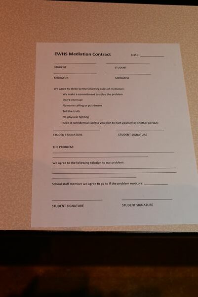 The morning training was facilitated by EWHS Counselor Josh Webb, assisted by former EWHS student and peer mediator Jess Phan. Phan is now studying political science at the University of Washington and plans to go to law school.