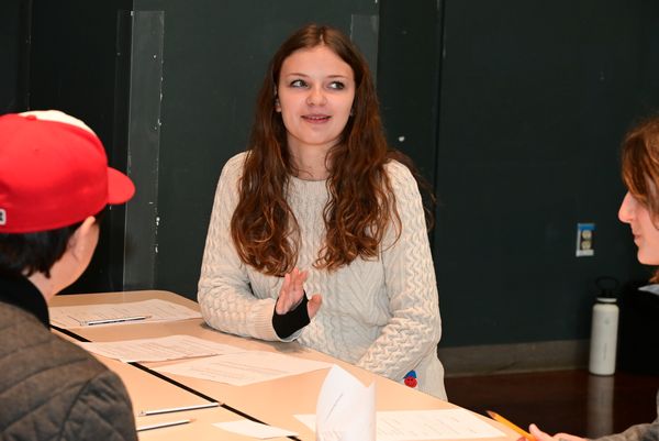 After an introduction to the day’s ground rules, the group broke into tables for role playing. Two students were assigned to be mediators, and two assigned to be disputants. The disputants received a script describing their dispute, and were coached by Webb and Phan in another part of the room separate from the mediators to ensure that the mediators had no prior knowledge of the dispute’s details. Disputants then returned to the table to begin role play with the mediators, who would draw out the causes of the problem and help the disputants come to a resolution.
