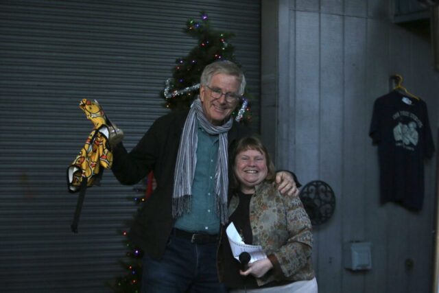 At the Dec. 17 event, JKF Executive Director Sandra Mears gifted Steves a suitcase cover with yellow rubber ducks on them. Some attendees also ate white cake with the words “fait accompli” written in red icing.